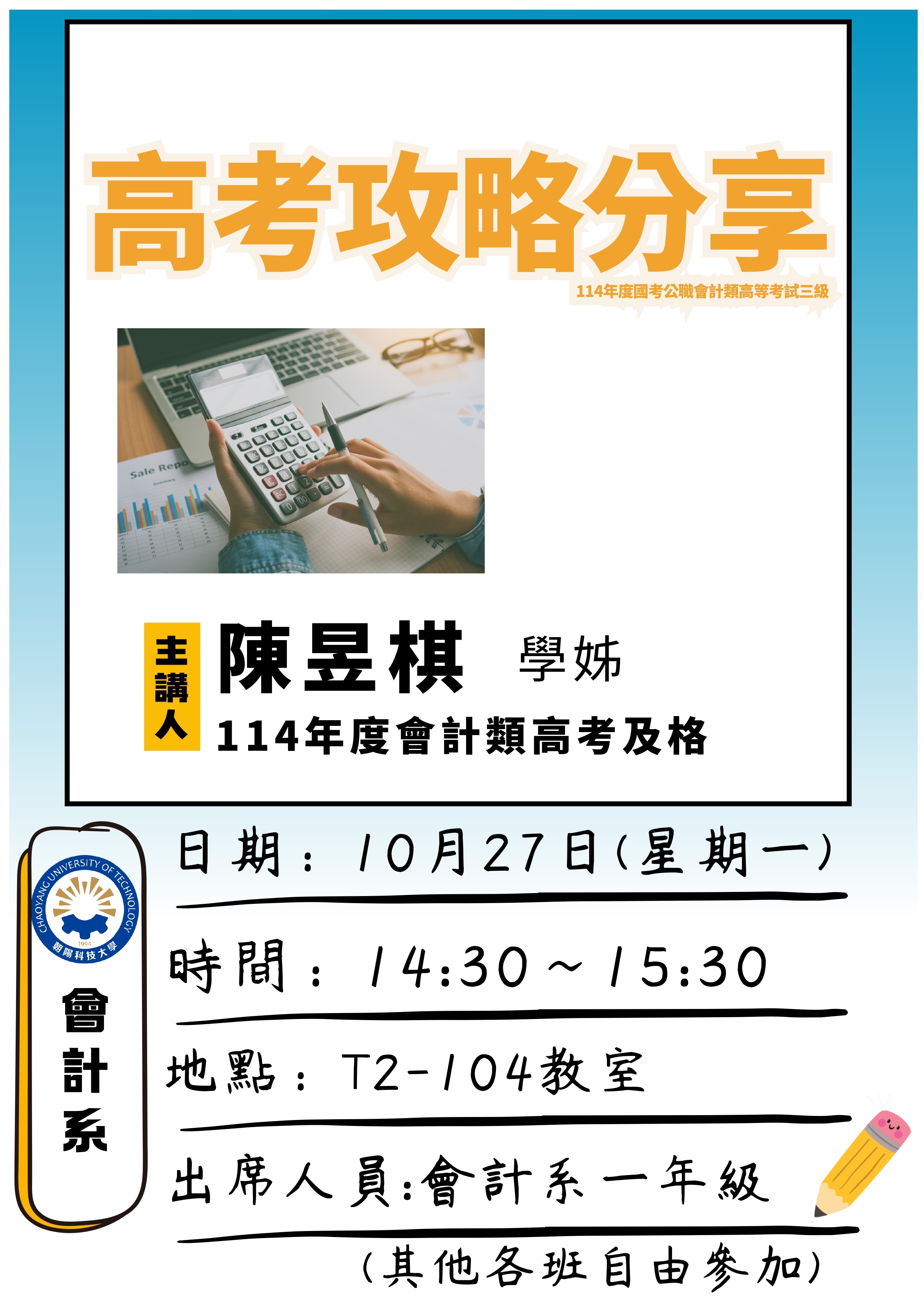 《講座》高普攻略分享| 講師陳昱琪學姊